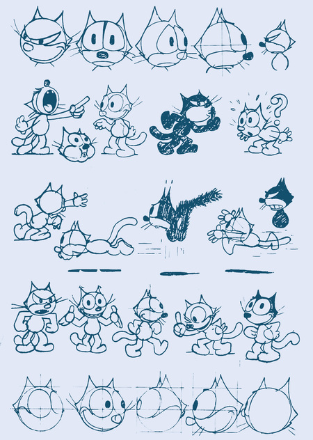 Со временем его образ менялся. Ранний Феликс был более угловатым и плоскостным, но уже к середине века его силуэт стал мягче и округлее, так требовало телевидение. Исчезла сложная штриховка, линии выпрямились и упростились, чтобы образ легче воспроизводился в печати и на экране. Молчаливый герой немого кино научился говорить, и вместе с голосом получил новую мимику: губы начали артикулировать, глаза стали активнее. А в мерчандайзе Феликс обзавёлся множеством аксессуаров — от чемоданов до фирменных шляп, превращаясь в универсальный символ, легко узнаваемый на упаковке или игрушке.