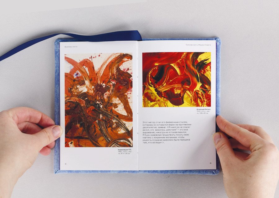 Обложка книги выполнена из термохромной ткани, которая меняет цвет при прикосновении