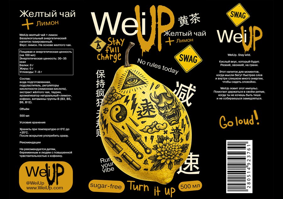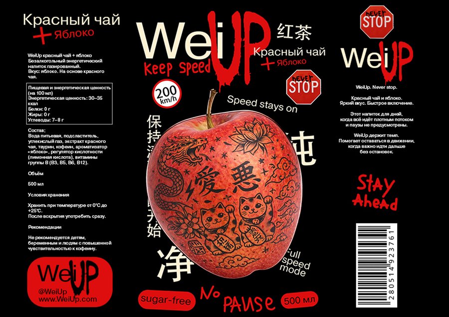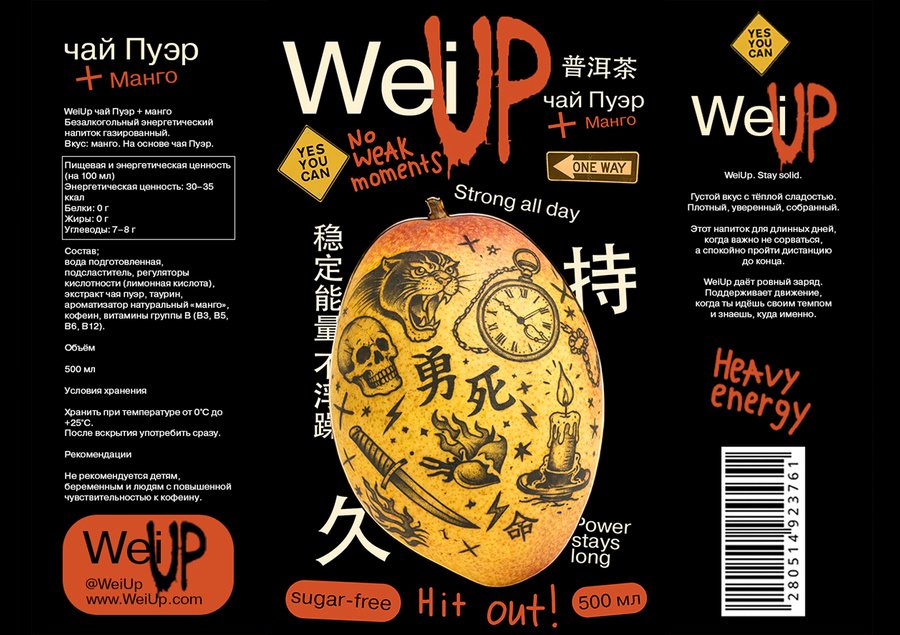 WeiUp — бренд энергетиков на основе классического китайского чая с современными вкусами. Вдохновлён уличным стилем и ритмом города, он освежает и помогает сохранять концентрацию.
