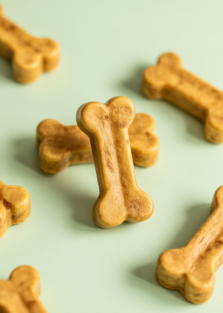 Обложка сделана при помощи нейросети Ideogram AI: Create an image dog treats in the shape of a bone on a light green background