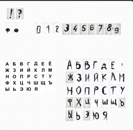 font sketch (full RUS/ENG, puncture numbers and signs)