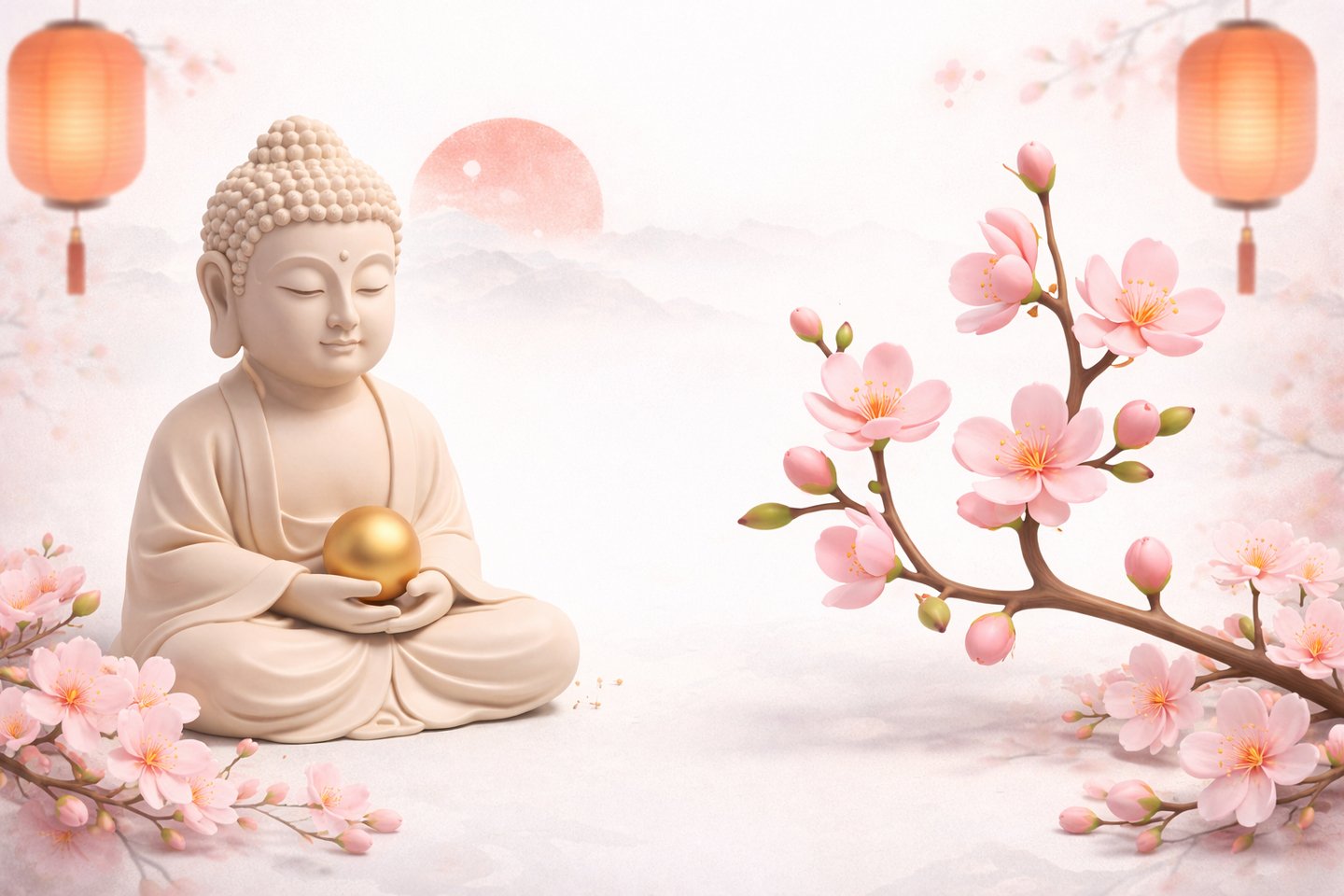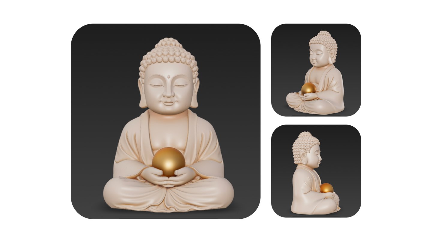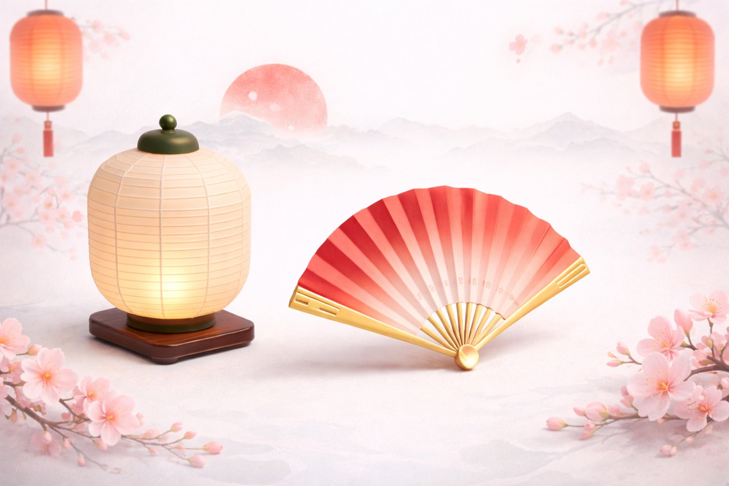 промпт: набор минималистичных миниатюр на основе референсного стиля (будда, японский фонарь, палочки для суши, веер, ветка сакуры, суши). минималистичные 3d модели на белом фоне