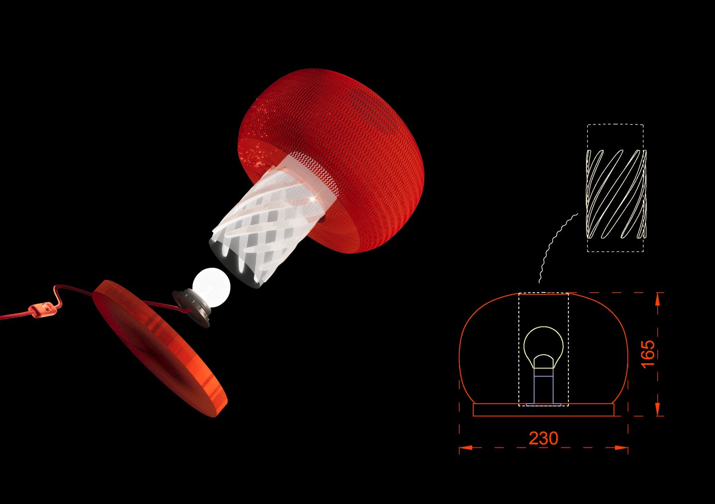 Рельефная поверхность внешнего диффузора помогает скрыть слоистость 3д-печати. Более того, в объемном рисунке скрывается отсылка к другим вкусняшкам. Пупырки на мармеладке отсылают к сахарной посыпке.