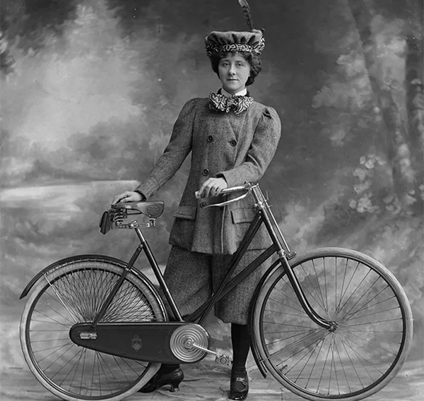 Но одним из наиболее важных «звоночков» к появлению брюк в женском гардеробе на мой взгляд стало активное повышение интереса к спорту. Так называемый велосипедный бум в 1890-х годах сформировал новый взгляд на женский гардероб, благодаря которому появились так называемые «bloomers» — свободные брюки до середины икры, созданные Амелией Блумер.
