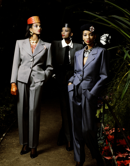 Power suit, или как его еще называют power dressing, служил целью подчеркнуть женский профессионализм и статус женщины в деловом мире, визуально уравняв женщину и мужчину в корпоративной среде. И основными его чертами являлись: геометричность форм, закрытый верх, минимум деталей и украшений, прямые или слегка зауженные брюки (что можно хорошо заметить на фотографии 1979 года выше) и нейтральная цветовая гамма.