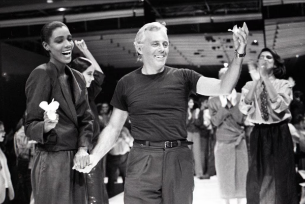 Джорджо Армани и модель, 1979 год; Джорджо Армани ready-to-wear Весна/Лето, 1983–1984 года