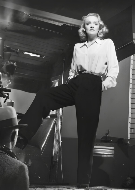 Марлен Дитрих использовала образ женщины в брюках как своего рода агитационный инструмент. Это была провокация, разрушавшая гендерные нормы, выражавшая привлекательность вне традиционных представлений о женственности и демонстрацией независимости.