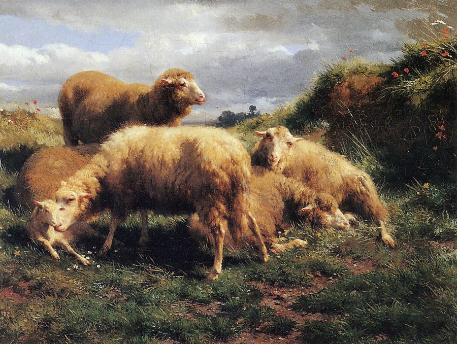 Роза Бонёр. Около 1860-х годов. Холст, масло. 1) Стадо коров в горах Оверни 2) Пейзаж с овцами