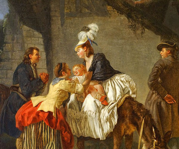 Особый интерес представляет мотив «игры в деревню», популярный среди аристократии середины XVIII века. В придворной культуре возникло увлечение переодеванием в простолюдинов, в котором дамы наряжались пастушками и доярками, чтобы пережить фантазию о беззаботной сельской любви. Эти маскарадные образы также проникли в живопись.