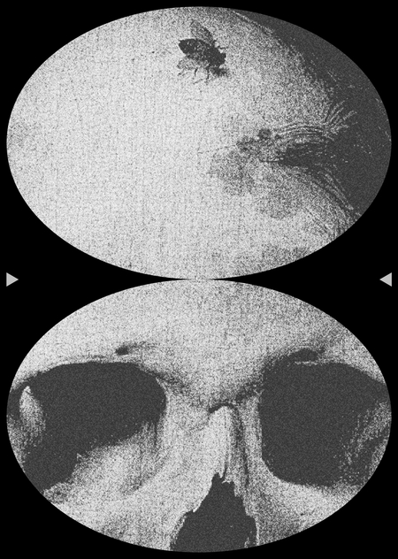 Важной деталью является муха, сидящая прямо на черепе. Этот символ усиливает идею разложения и порчи, ассоциируясь со злом, грехом и дьявольским началом, что придаёт изображению дополнительный морально-дидактический акцент.