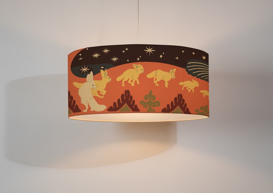 В серии абажуров используется восточная тематика — караван. Группы животных путешествуют вместе по диким природным местам. Три светильника символизируют утро, день и ночь. Используются восточные, в частности, персидские мотивы.