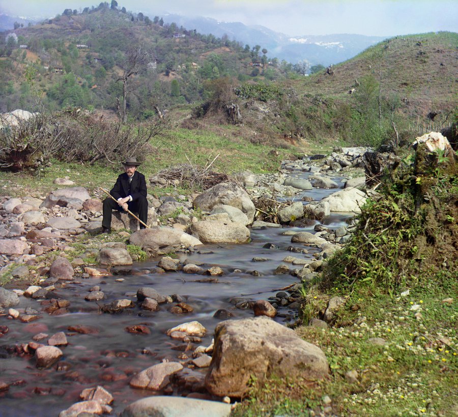 Фотопортрет Сергея Михайловича Прокудина-Горского. Река Скурицхали