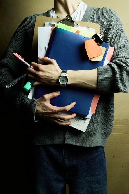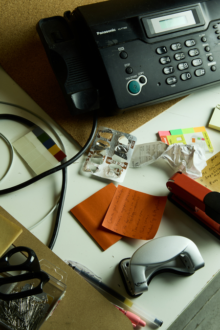 Серия исследует момент накануне конца рабочего дня, когда накопленный стресс и усталость материализуются в хаосе документов, канцелярии и бытовых следов. Беспорядочные контрасты раскрывают абсурд и давление офисной рутины. Резкие визуальные образы усиливают это ощущение, а визуальный гранж и слегка мрачная эстетика подчеркивают желание сбежать домой как можно быстрее.