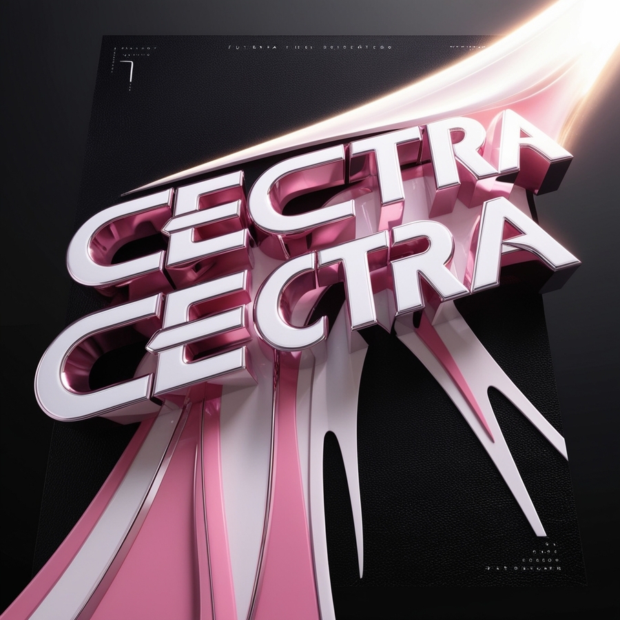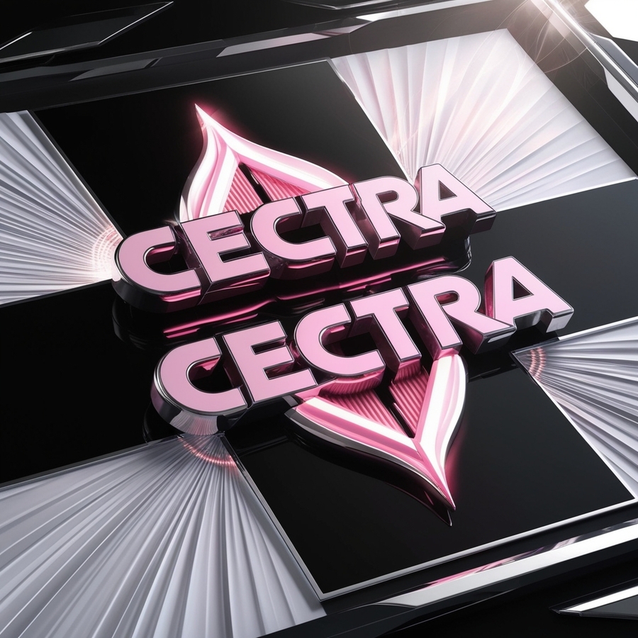 promt: 3d model of signboard with name «CECTRA CECTRA» with pink, black, white colors, black background, 3D lettters, white glow effect, pastel colors, high resolution, detailed illustration, --ar 1140:1600