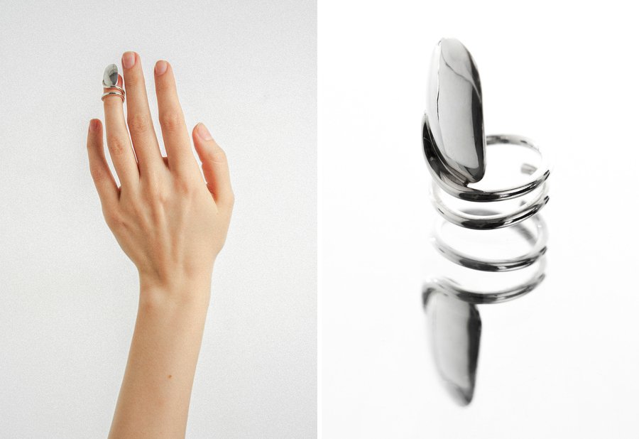 Коллекция состоит из 2 сетов накладных ногтей и 2 ногтей-колец. Ногти-кольца являются итогом переосмыслений накладных ногтей.