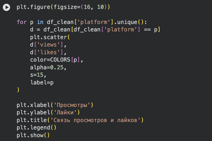Связь просмотров и лайков