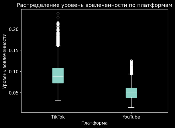 Распределение уровня вовлечённости по платформам