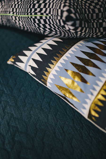 Совет дизайнера: Интерьер, в котором много этого орнамента, выглядит перенасыщенным и слишком контрастным. Можно, к примеру, оформить гусиной лапкой одну акцентную стену, а возле другой стены поставить кресло с этим же орнаментом. Или, например, постелить в спальне ковер с гусиной лапкой и положить на кровать пару декоративных подушек с аналогичным рисунком. Четырехлистник Четырехлистник — это повторяющийся геометрический орнамент, который в классическом виде представляет собой частично перекрывающие друг друга окружности равного диаметра. В качестве дополнения в узоре могут присутствовать и острые углы, расположенные на стыках окружностей. Элементы могут быть классическими с одинаковой длиной и шириной или вытянутыми по горизонтали либо по вертикали. Этот орнамент дошел до нас из невероятно глубокой древности. Он относится к традиционным узорам, встречающимся и в архитектуре, и в искусстве, и в христианской символике, и в геральдике. Четырехлистник и близкие к нему формы можно обнаружить и в аутентичных марокканских орнаментах. В дизайне интерьеров этот узор весьма популярен. Его не обходят вниманием производители текстиля, обоев, обивок, ковров и даже линолеума.