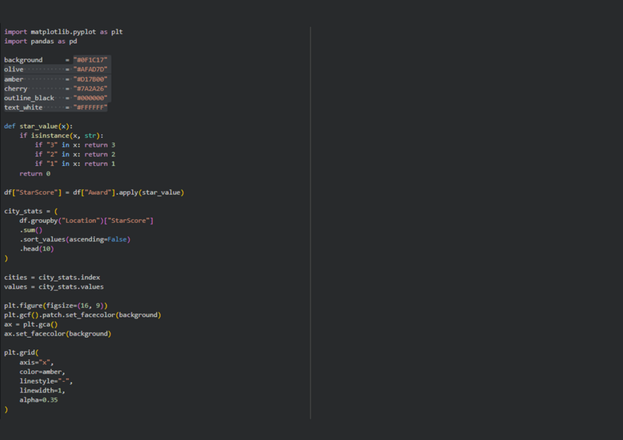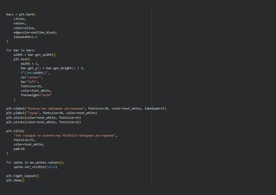 3. Агрегирование и ранжирование — применялись при расчёте суммарного количества звёзд по городам. Это позволило определить города-лидеры по концентрации Michelin-звёздных ресторанов.