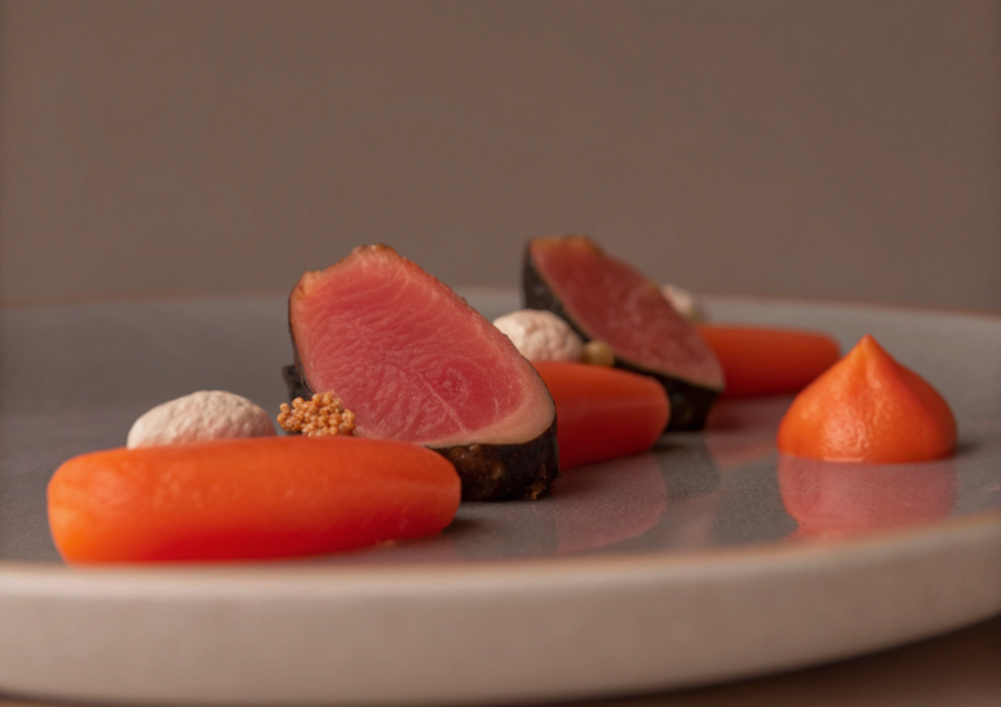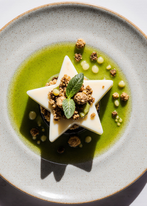 promt: Michelin-star restaurant dish, fine dining plating, minimalist haute cuisine presentation, artistic food composition, elegant porcelain plate, perfect balance and symmetry, soft natural light, shallow depth of field, ultra-realistic food photography, high detail, refined textures, dark neutral background, cinematic mood, professional studio lighting.