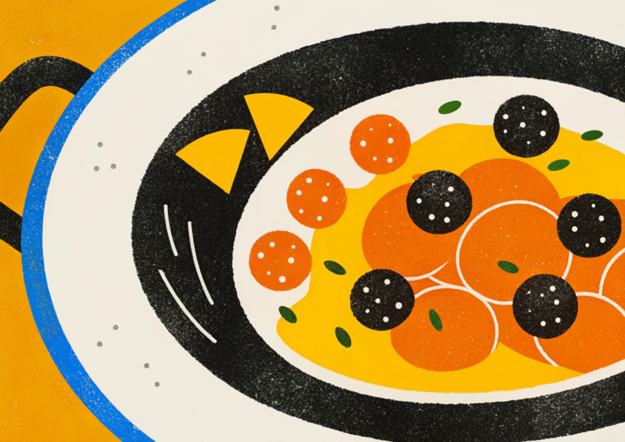 #D17B00 — насыщенный янтарно-оранжевый цвет выступает акцентом, символизирует вкус, тепло и гастрономическую выразительность, привлекая внимание к ключевым элементам.