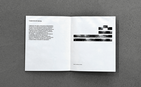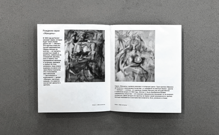 Буклет рассказывает о фасадах, возведенных над зданием Московского Манежа. Графический и архитектурный фасады создают лаконичную пару, превращая здание выставочного зала в отдельное произведение искусства, вдохновленное творчеством художника