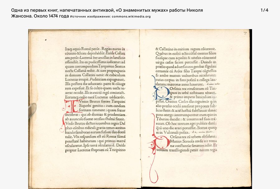 Почему полезно изучать её историю? Потому что так мы можем изучить основные типографические приёмы, типы шрифтов, шаблоны вёрстки, которыми дизайнеры пользуются до сих пор, ведь каждый из них появился в свой исторический период