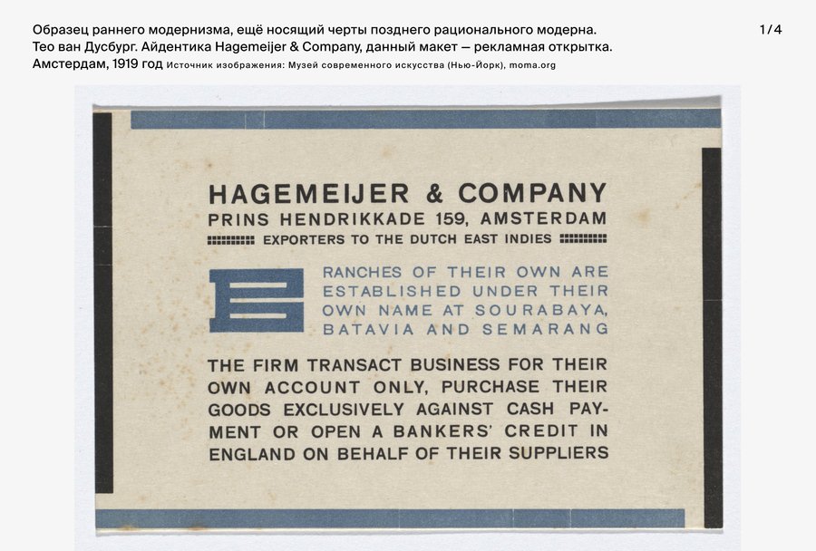 По аналогии с ар-нуво пропустим и ар-деко — его типографические стандарты более или менее повторяют раннемодернистские. Как следующий этап развития нас интересует поздний модернизм