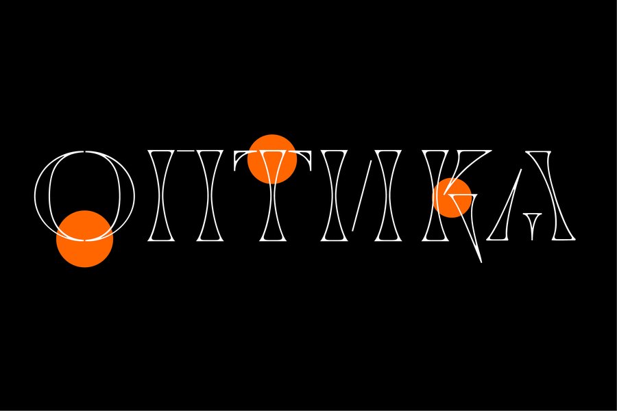 Шрифт Dioptric — декоративный акцидентный, предназначен для использования в крупных кеглях. Он вдохновлен оптической схемой объектива фотоаппарата и использует найденные в чертежах модули как основу.