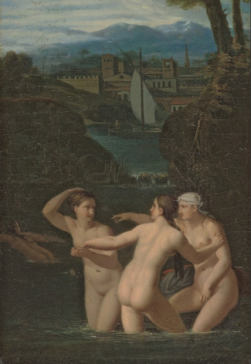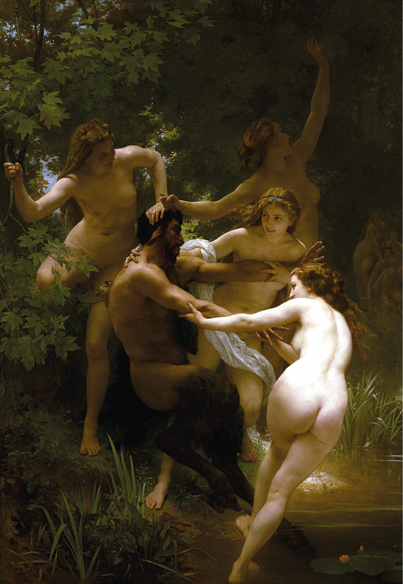 Вильям Адольф Бугро «Нимфы и Сатир» 1853 г. / Александр Ротхауг «Водная нимфа» 1905 г. / Алексей Егорович Егоров «Купающиеся нимфы» 1810-е.