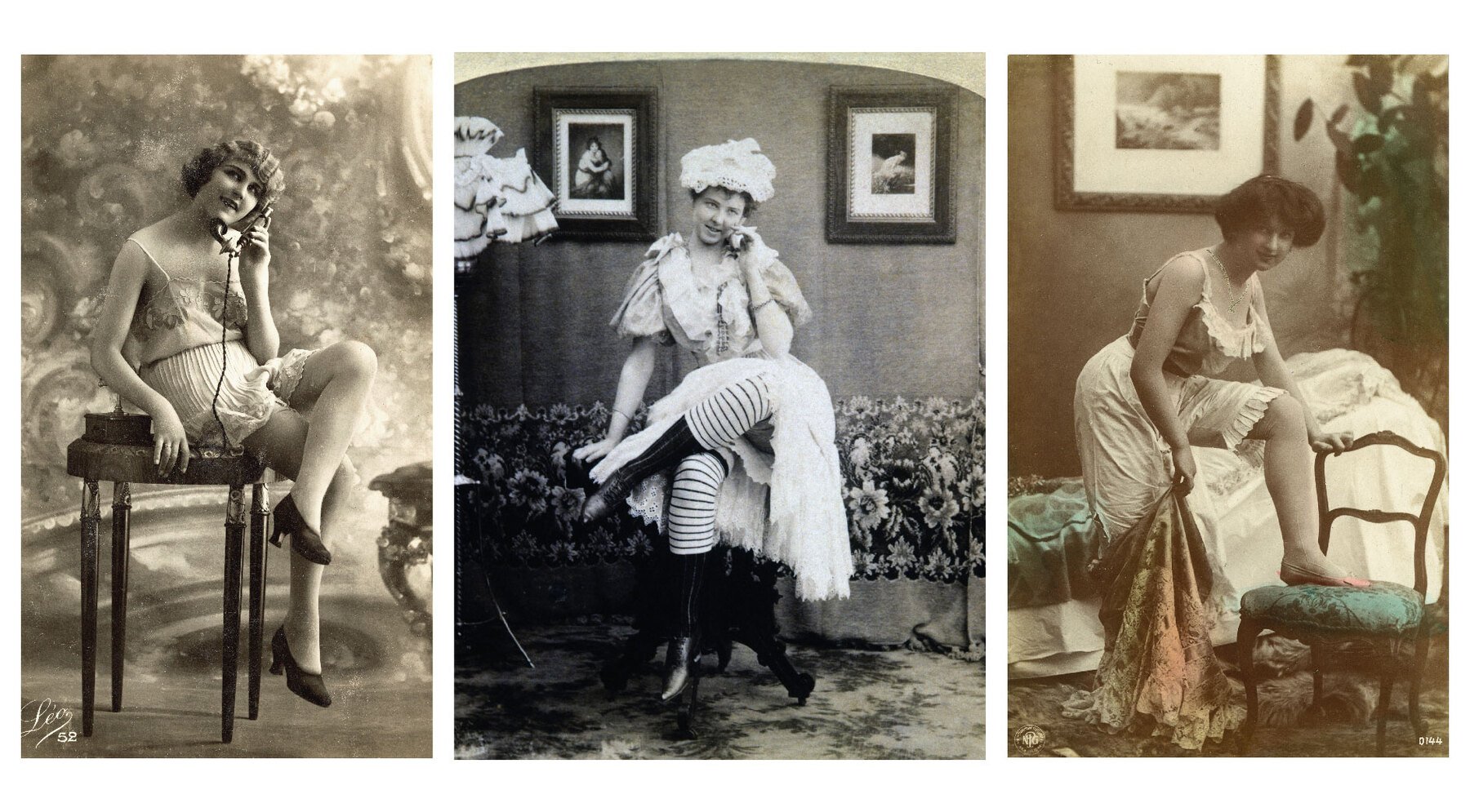 кадры 1900 г. / телефон часто фигурировал в эротических сюжетах, так как вписывал женщину в современный контекст.