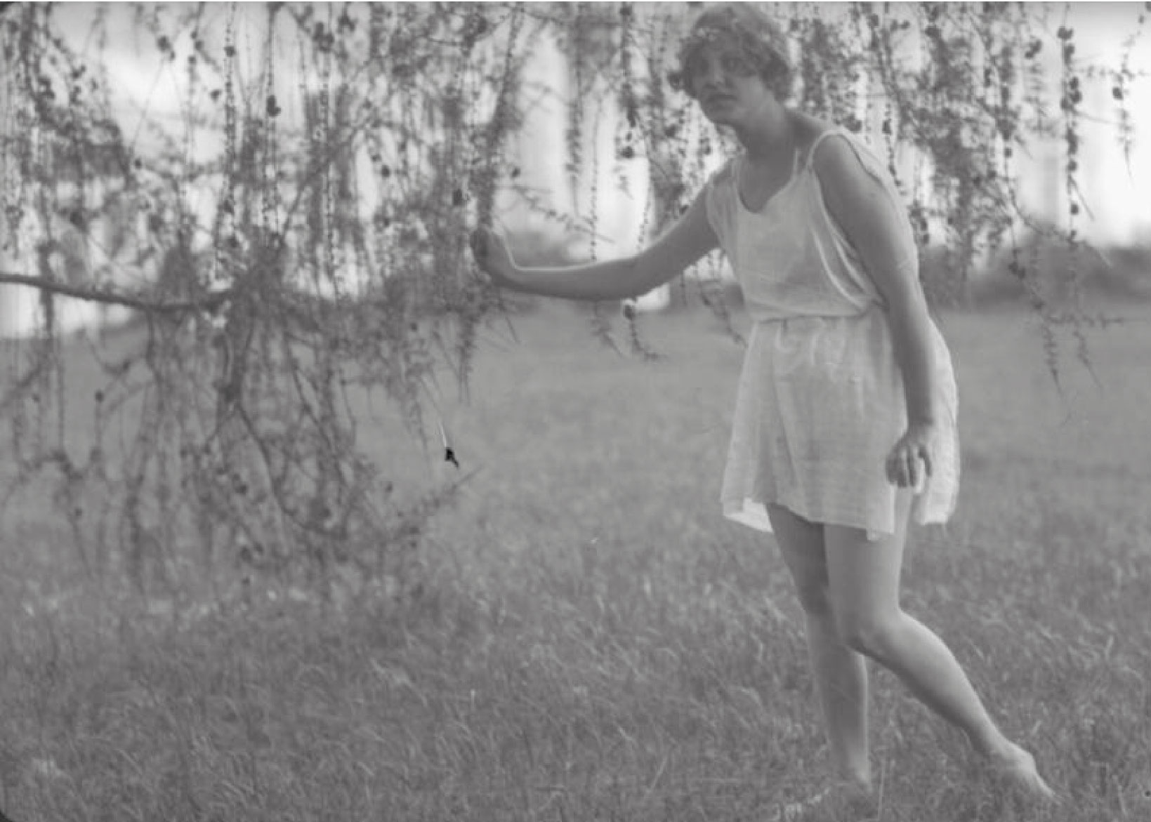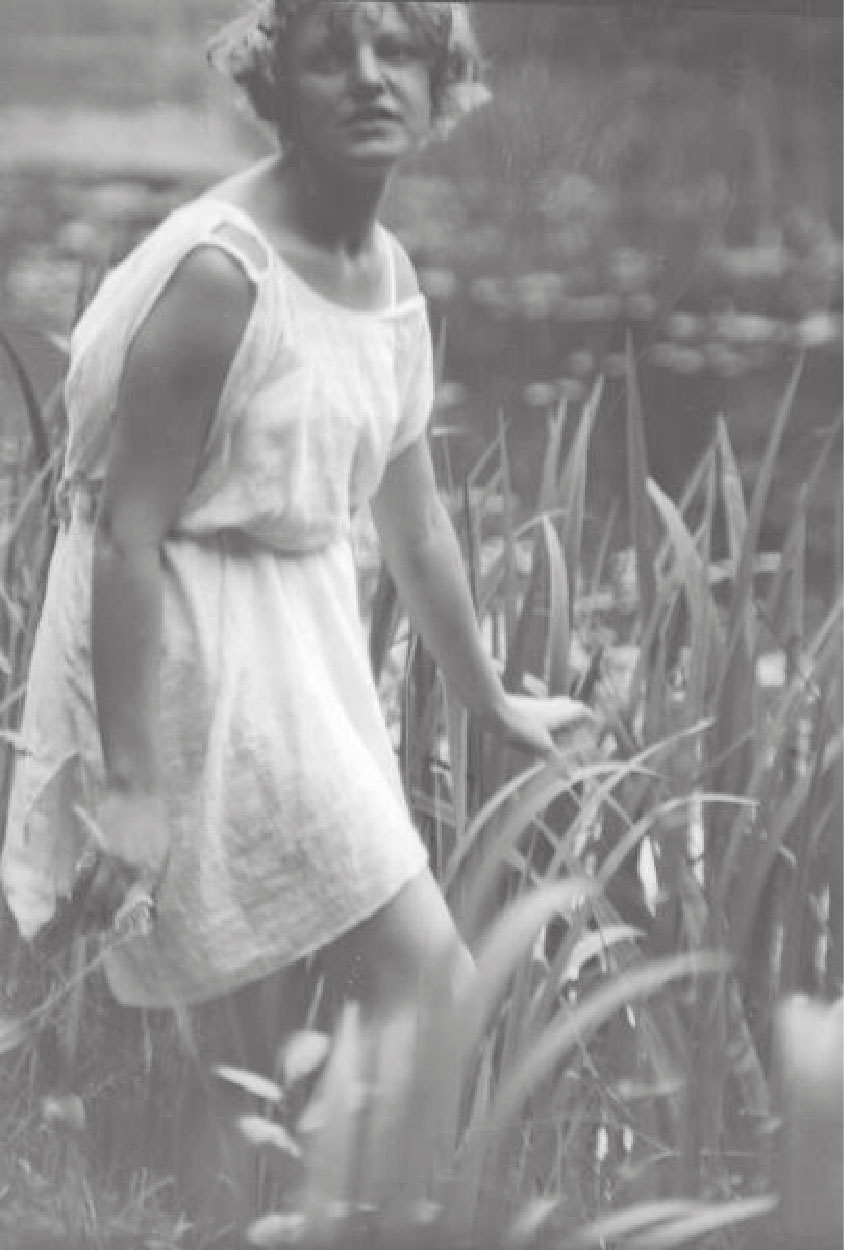 Фотографии Александра Гринберга / Девушка в тунике под ветвями лиственницы / Девушка в платье-бюстье / обнаженная девушка / Люся Долгова / Девушка в тунике среди камышей / 1920-е.