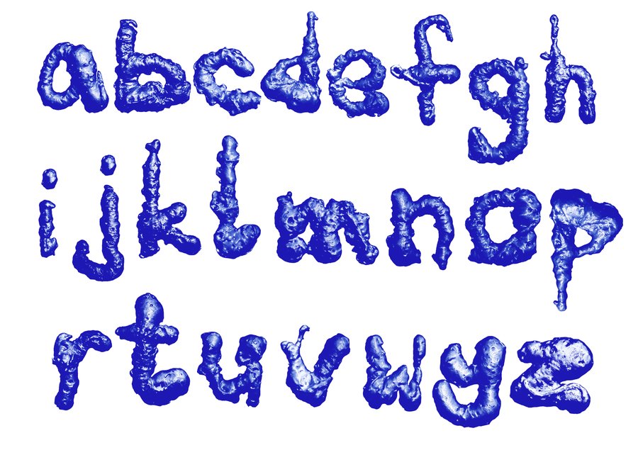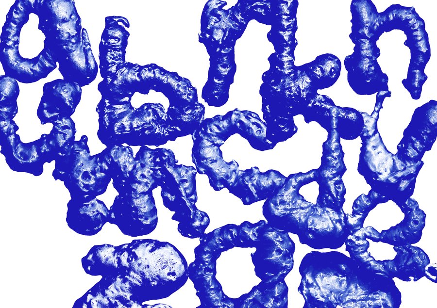 Авторский шрифт, на котором построена айдентика выставки, основан на идеях Ива Кляйна о нематериальности и пустоте. Расширяющаяся фактура монтажной пены фиксирует момент между появлением и исчезновением, превращая букву в застывшее движение.