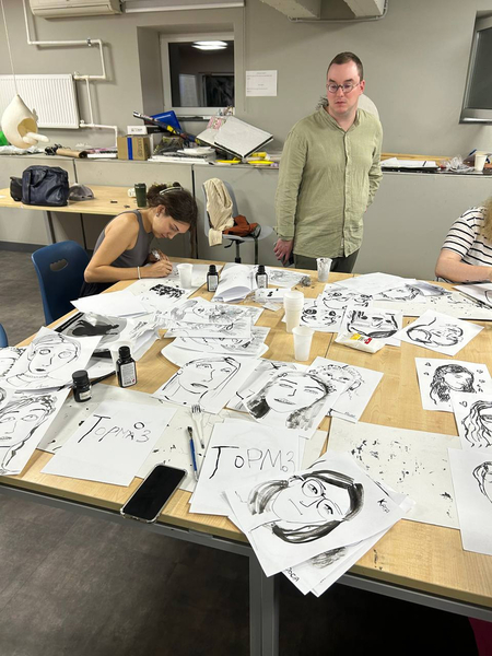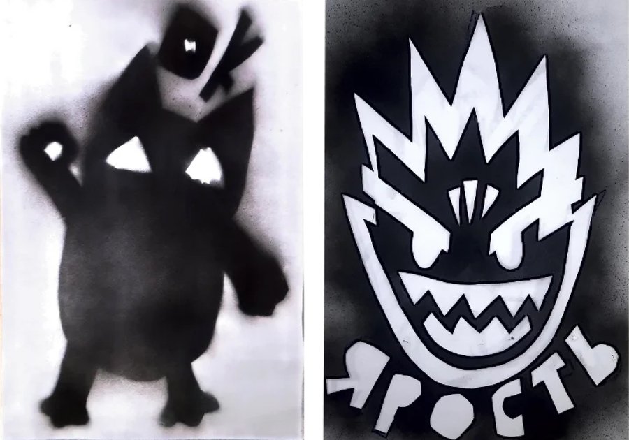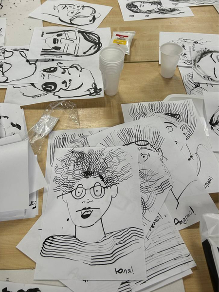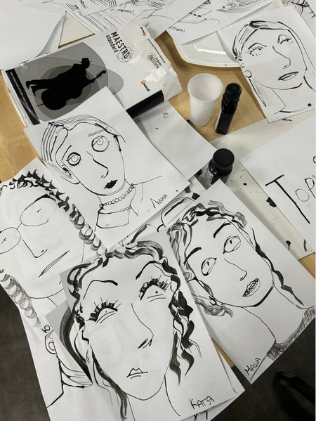 В рамках воркшопа по иллюстрации студенты групп Екатерины Филипенко нарисовали портреты, иллюстрирующие различные эмоции. Используя тушь и баллончики, художники изобразили