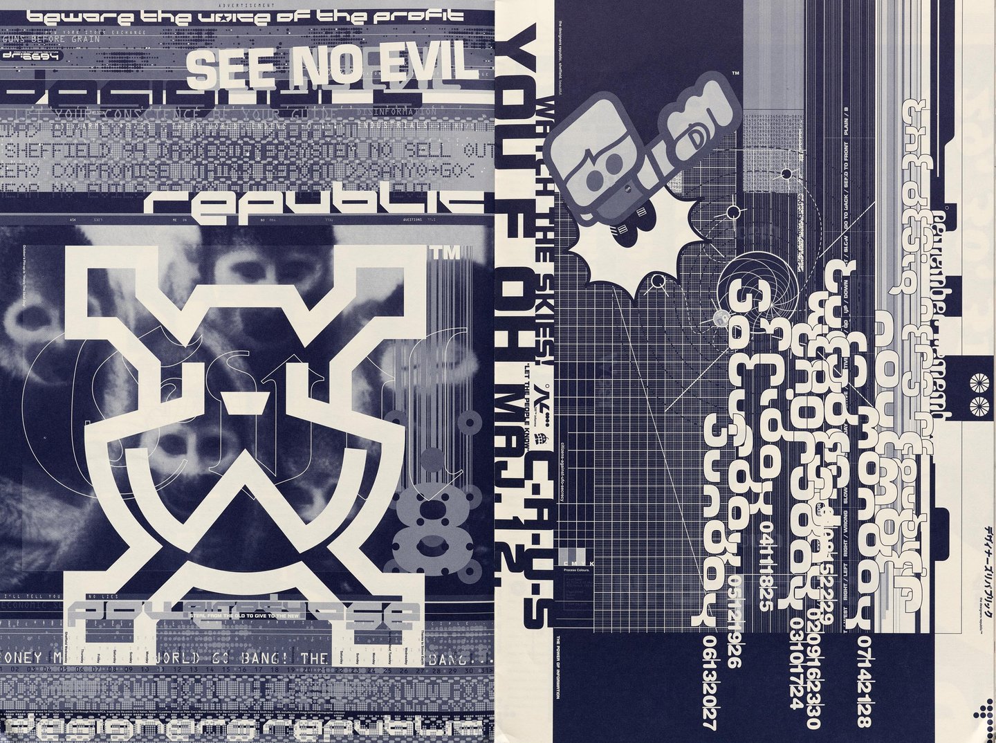 В этом шуме складываются два коллектива, которые принято считать иконами графического дизайна девяностых: The Designers Republic из Шеффилда и лондонский Tomato.
