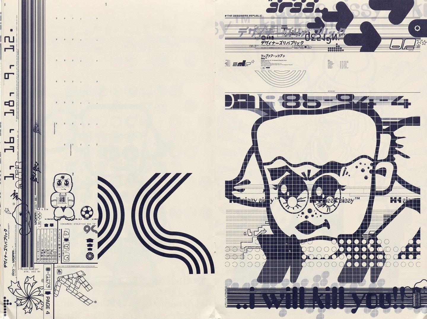 У The Designers Republic она усиливает уже заданный курс: студия изначально мыслит футуристическими мирами, а компьютер позволяет этому цифровому языку развернуться и стать взрослее и интереснее. У Tomato цифра врастает в аналоговый хаос: бумага, краска, факсы и помарки остаются основой, а компьютер работает как клей, который собирает все это вместе.