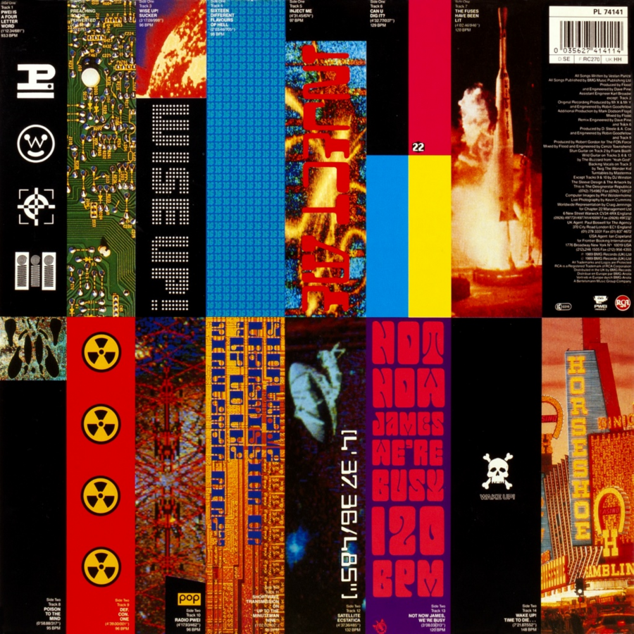 Задняя сторона обложки сингла Pop Will Eat Itself «Wise Up! Sucker», 1989 г. // Задняя сторона обложки сингла Pop Will Eat Itself «Def.Con One», 1988 г.