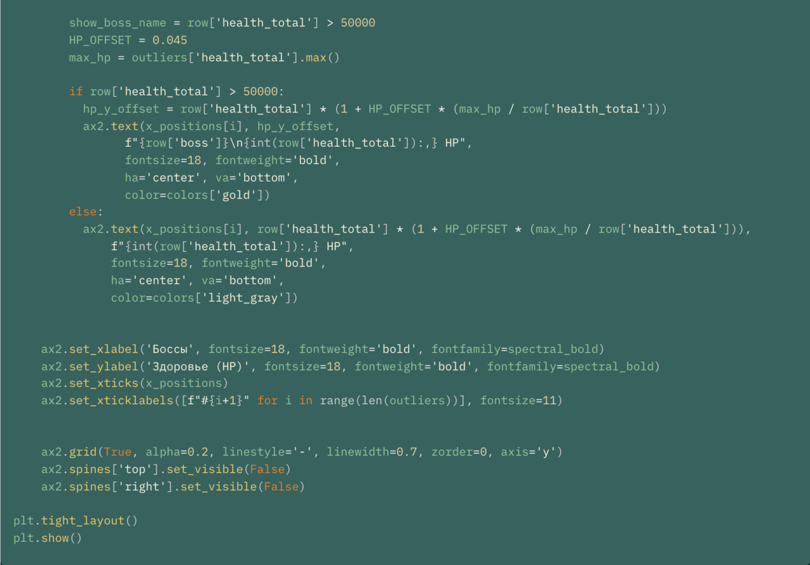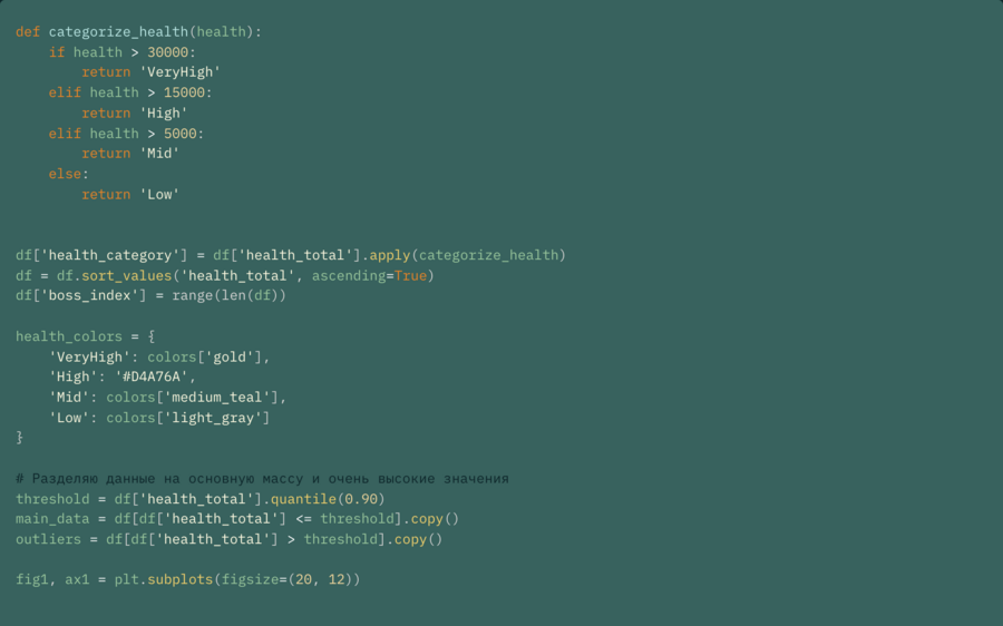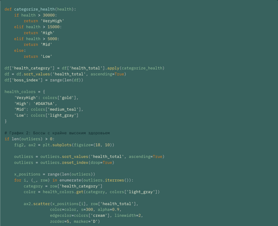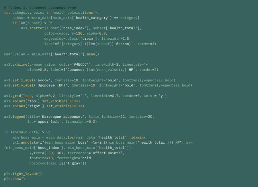 Приведенные диаграммы показали: 1. Нормальное распределение здоровья большинства боссов 2. Довольно резкий рост уровня здоровья в верхнем квартиле (особенно сильные боссы)