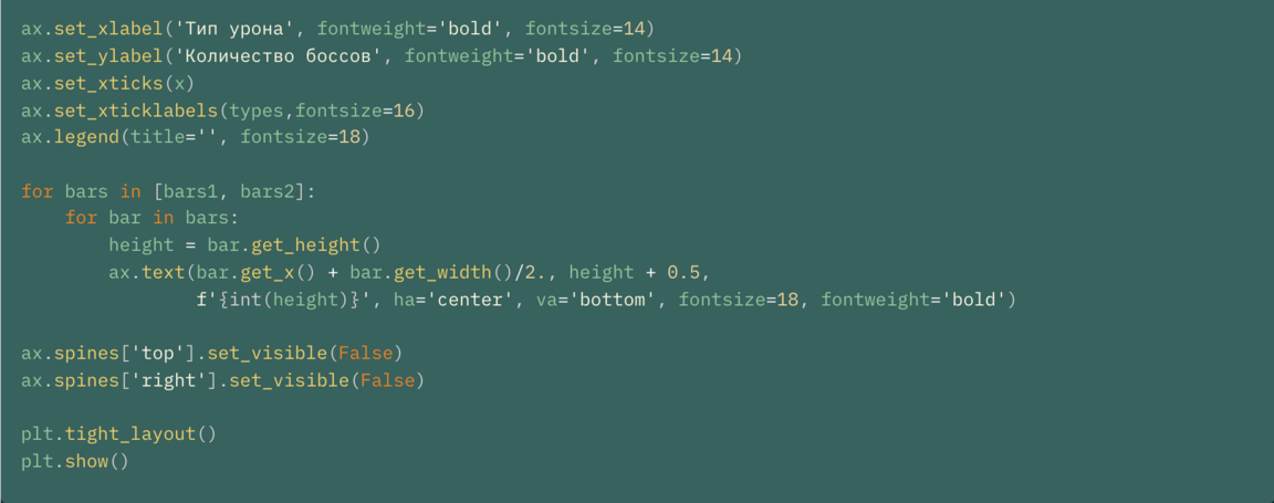 Для того, чтобы определить, какая броня является особенно эффективной в битве с боссами, необходимо проанализировать, какие типы урона наиболее популярны. Столбчатая диаграмма позволит ясно увидеть наибольшие значения в рамках общей закономерности.