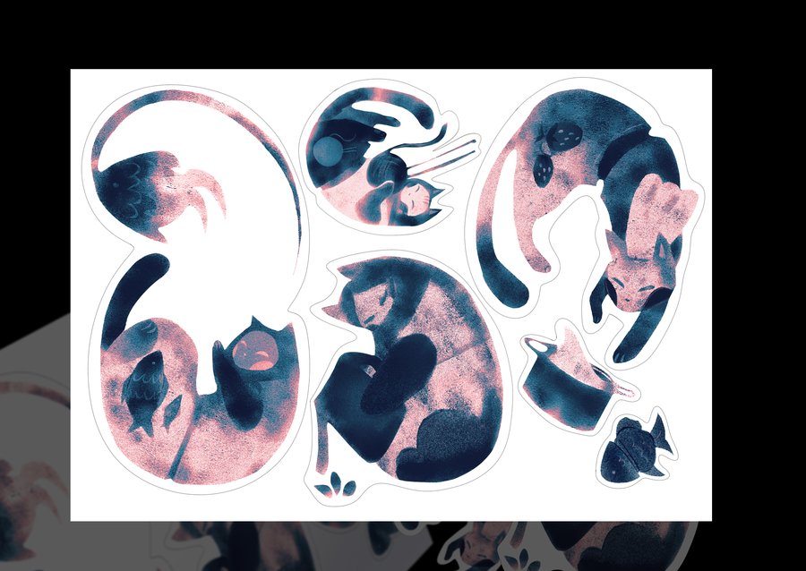 Графическая серия посвящена совмещению образов кошки и матрешки, направленные на демонстрацию постепенного «разматрёшивания», приобретения динамики