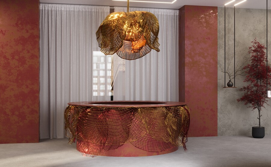 Декоративная часть стойки выполнена из металлической сетки, форма которой имитирует листья цветка.
