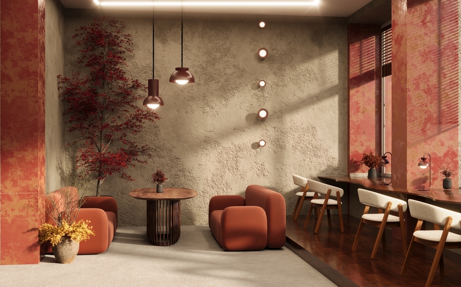Зона ожидания совмещена с гардеробной, а в шоу-руме на продажу представлены примеры предметов интерьера, которые посетители могут сделать своими руками.