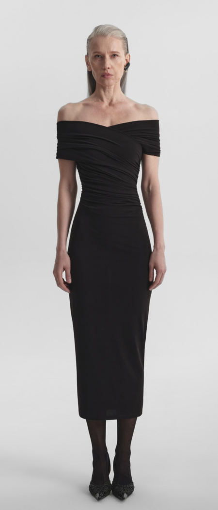 Композиция: статичность, контроль, акцент на конструкцию плеч и линию талии