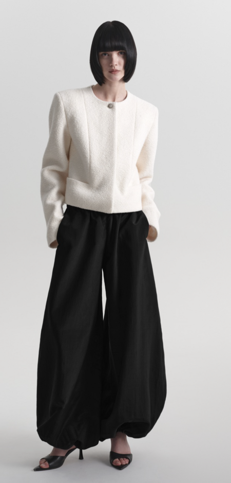 - Конструктивная сложность, качество тканей и позиционирование бренда в сегменте доступного премиума; - Высокие требования к посадке и технологии пошива; - Жакет формируется как инвестиционный элемент гардероба.