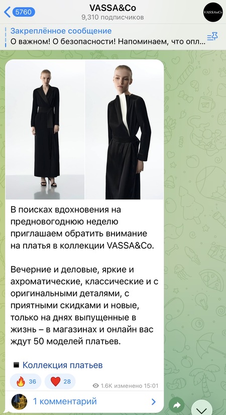 Бренд VASSA& CO позиционирует себя как middle-up / доступный премиум