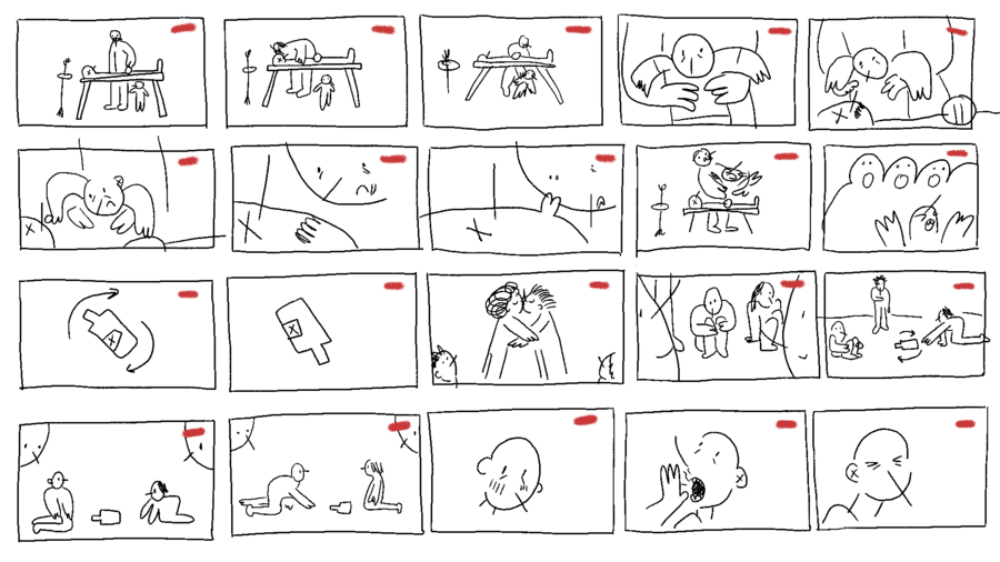 С самого рождения героя окружают поцелуи. Словно они преследуют его, а некий счётчик в углу стремится к нулю после того, как целуют героя.