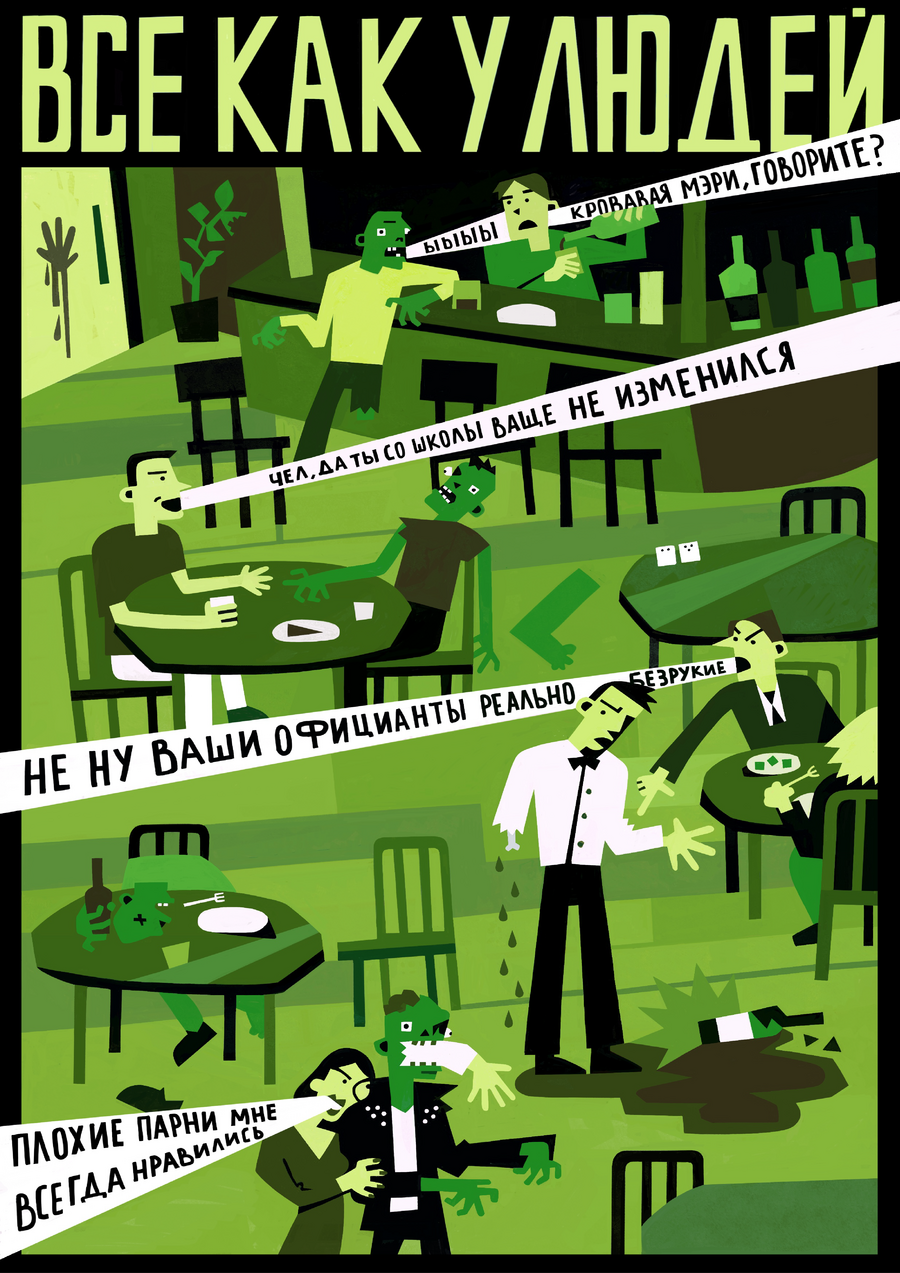 Апокалипсис наступил, но изменилась ли жизнь человечества? В данной серии комикс-плакатов в неожиданном ключе описаны сценарии развития истории после конца света. Люди удивительным образом смогли приспособиться ко всему.