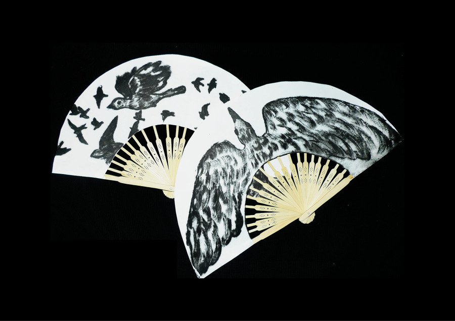 Проект исследует связь ветра и птиц, превращая веер в образ движения воздуха. Масштабирование — от крупного силуэта к ритму средних и малых форм — передаёт переход от мощного потока к лёгкому дыханию. Техника сухой иглы подчёркивает эту идею: линия здесь — след ветра, царапина его присутствия. В итоге работа собирает единый жест полёта, превращая разные размеры изображений в непрерывную градацию движения.