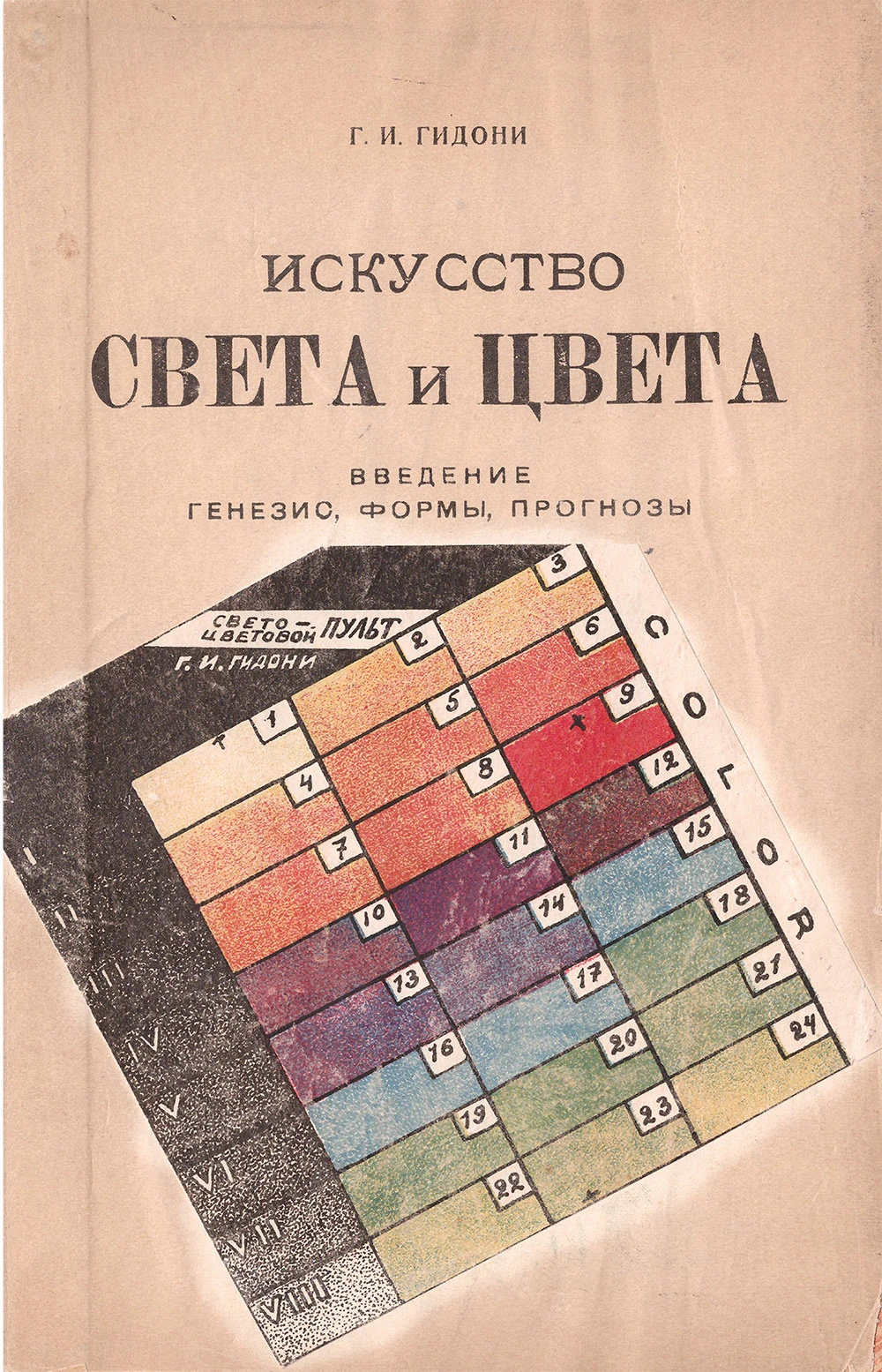 Владимир Баранов-Россинэ. Оптовон. 1920-е / Владимир Баранов-Россинэ. Цветные проекции оптофона 3. Дата неизвестна / Григорий Гидони. Титульный лист книги «Искусство света и цвета». 1930