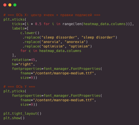 В такой ситуации иные представления данных теряют наглядность и возможность комплексно оценить их структуру. Heatmap позволяет сразу выделить зоны концентрации симптомов, визуально уловить повторяющиеся паттерны и сравнить диагнозы целиком, а не по одному изолированному признаку.